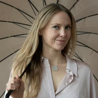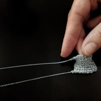 a minimal, fluid, yet sparkly statement necklace with a crocheted fabric like square.