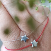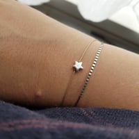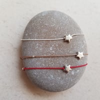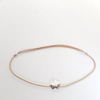 minimalistic bracelet with a solid 925 Sterling Silver star charm (6mm) on a beige knotting cord. Other colors are available.